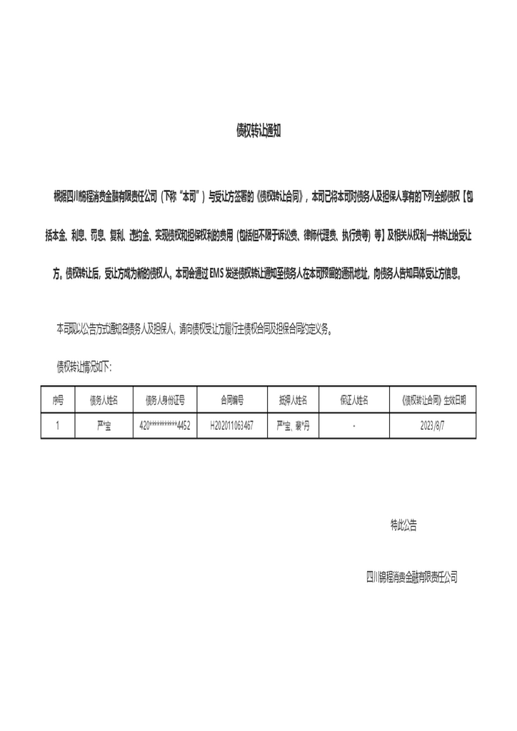 债权转让通知20240410