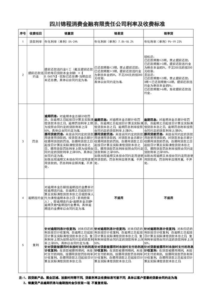 四川锦程消费金融有限责任公司利率及收费标准20240812